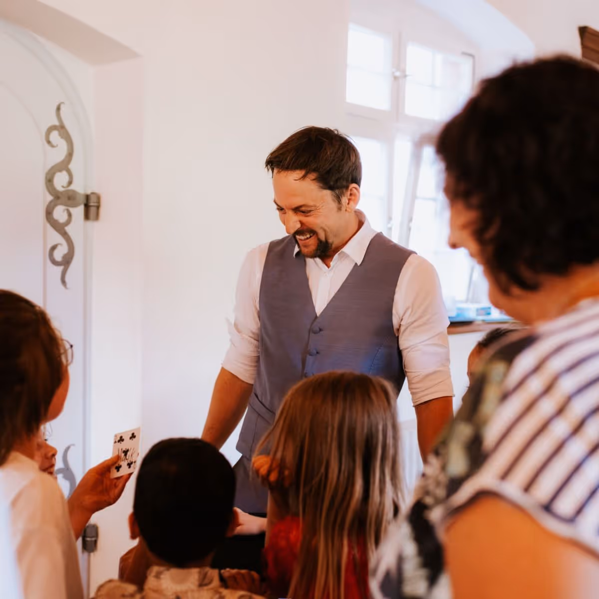 Ob am Tisch zwischen Aperitif und Hauptgang oder als konzentrierte Showsequenz: Close Up Zauberei schafft Nähe, Gesprächsanlässe und stilvolle Leichtigkeit. Chris Hill inszeniert Magie als Kunst – mit Präzision, Empathie und klarer Dramaturgie. Gäste erleben echte Interaktion statt Rätselraten, humorvoll und respektvoll. So entsteht ein besonderes Klima: gelöst, aufmerksam, elegant – und Ihr Event gewinnt an Profil und Wirkung.