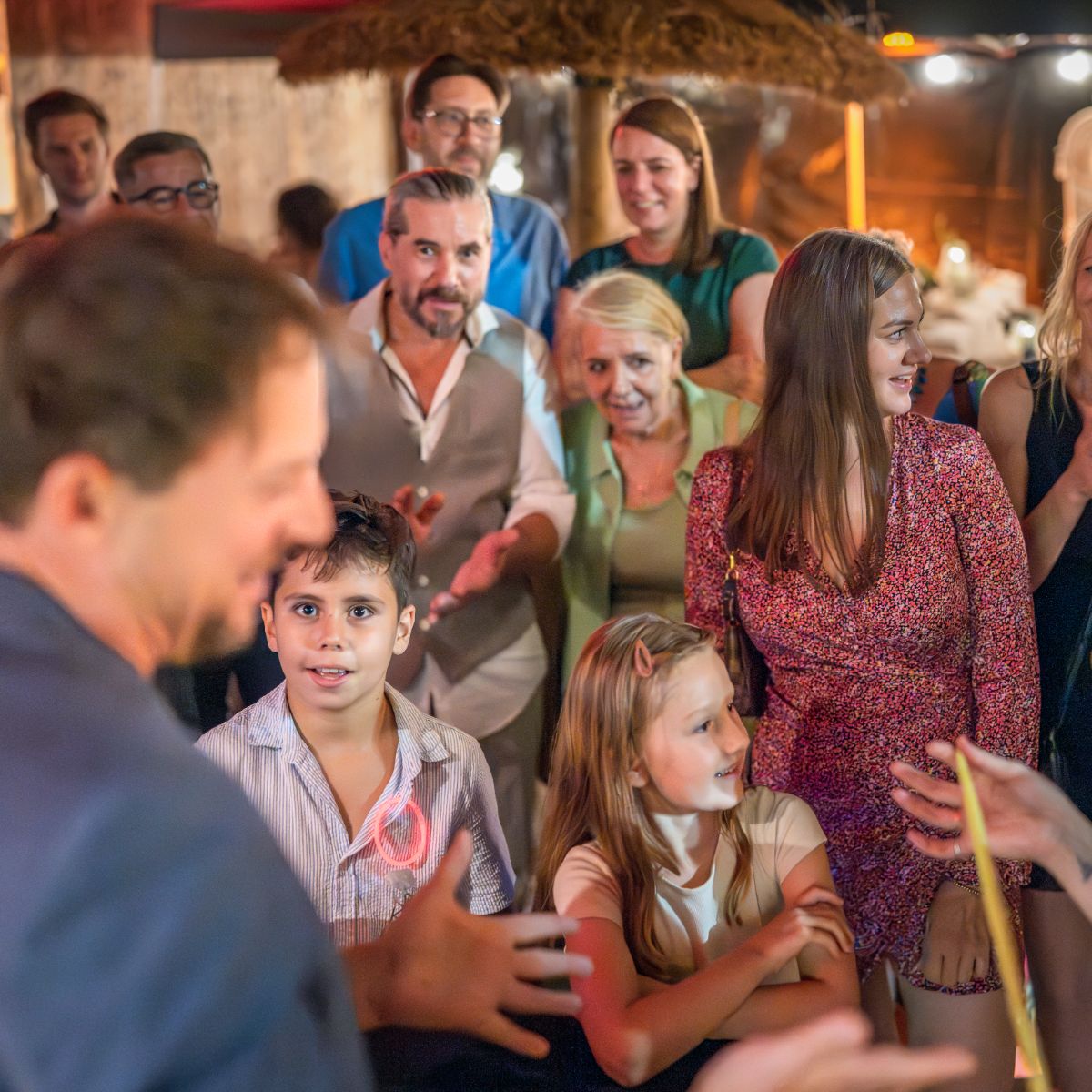 Magie als Team-Erlebnis: Chris Hill sorgt bei Ihrer Firmenfeier für Gesprächsstoff, Staunen und echte Verbindung zwischen Gästen.